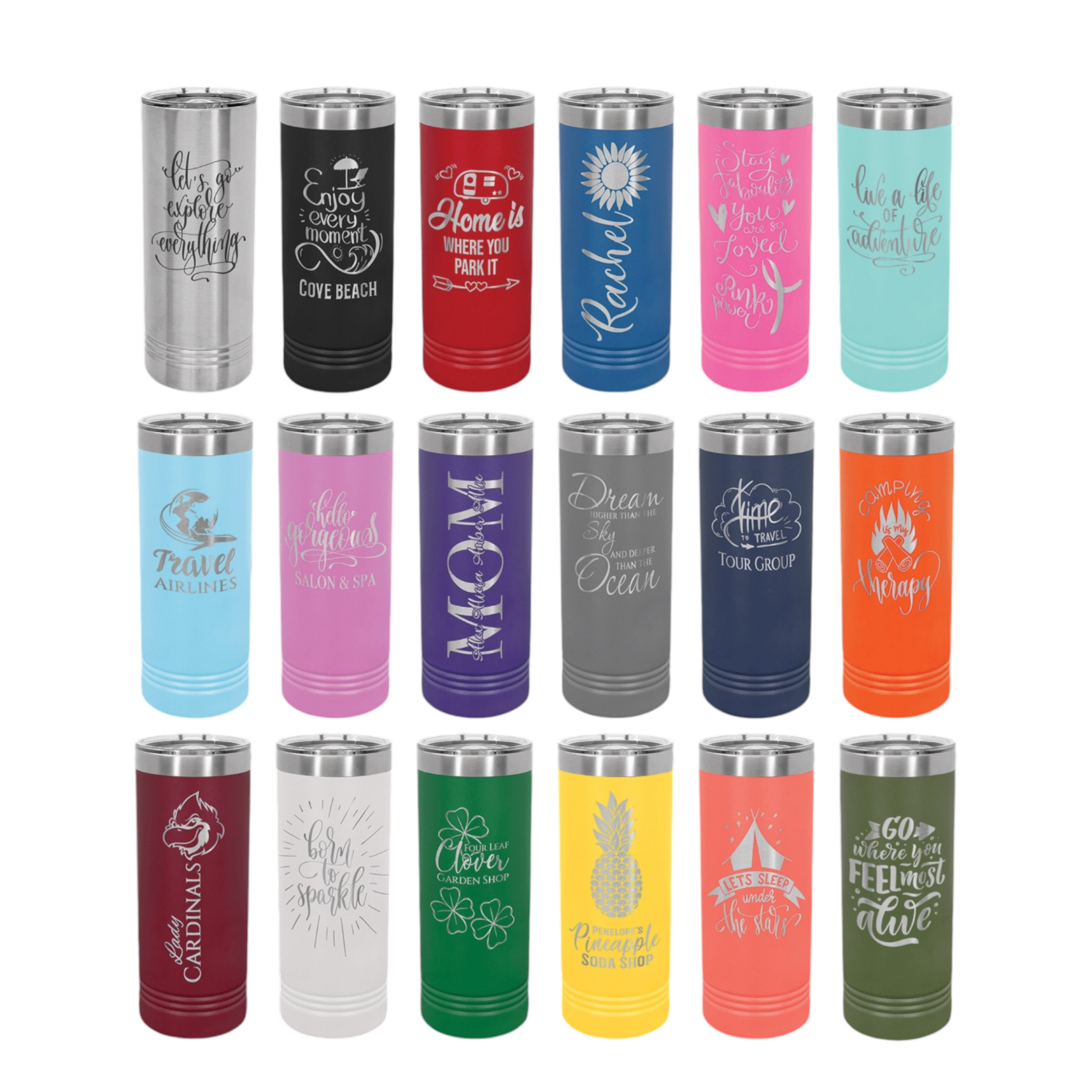 Sip in style with our personalized 22 oz Skinny Tumblers. Keep your drinks at the perfect temperature while adding a touch of personality. The perfect gift for yourself or a loved one. Cheers!